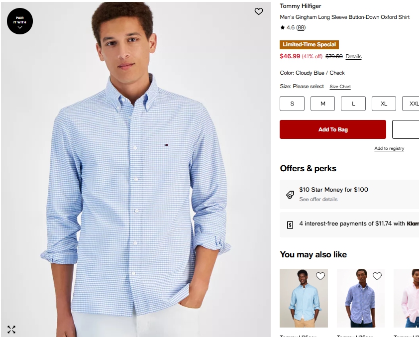 타미힐피거 맨 깅엄 버튼다운 옥스포드셔츠 $46.99
