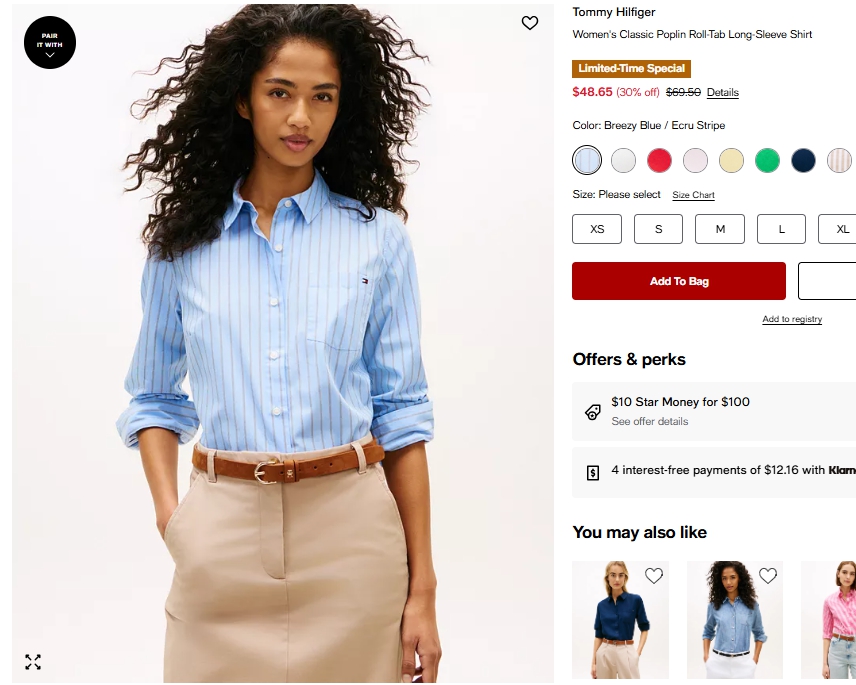 타미힐피거 우먼 클래식 포플린 롤탭 셔츠 $48.65