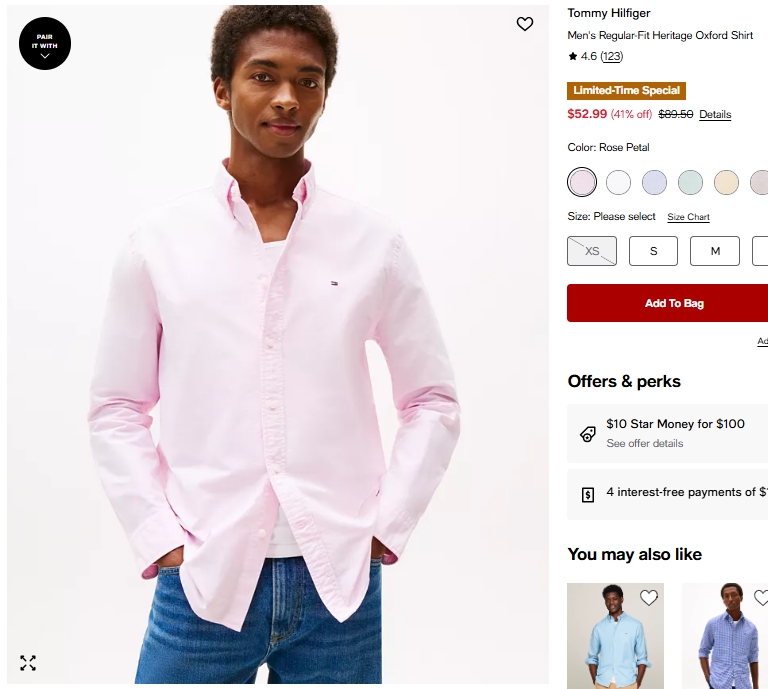 타미힐피거 맨 레귤러핏 헤리티지 옥스포드셔츠 $52.99