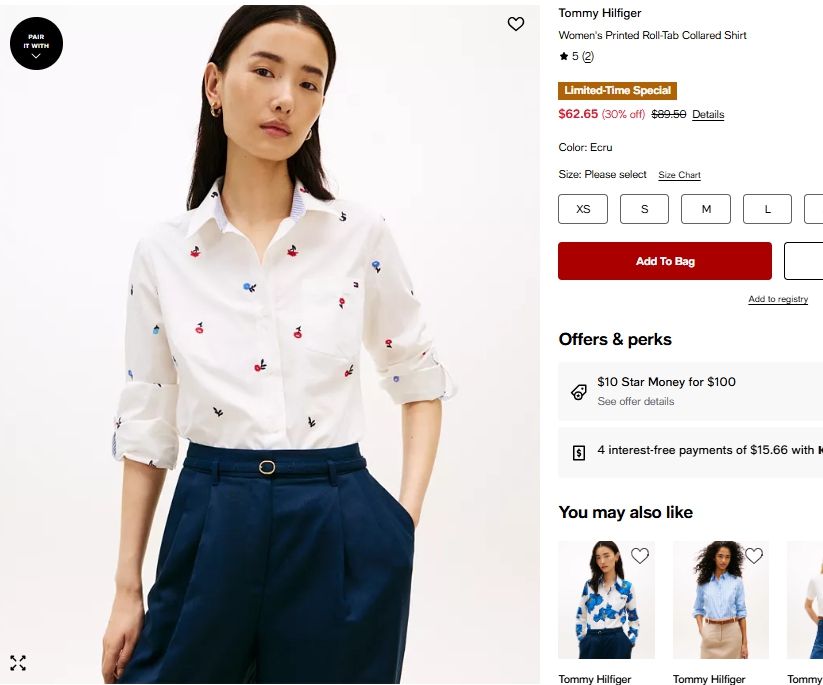 타미힐피거 우먼 프린트 롤탭 칼라 셔츠 $62.65