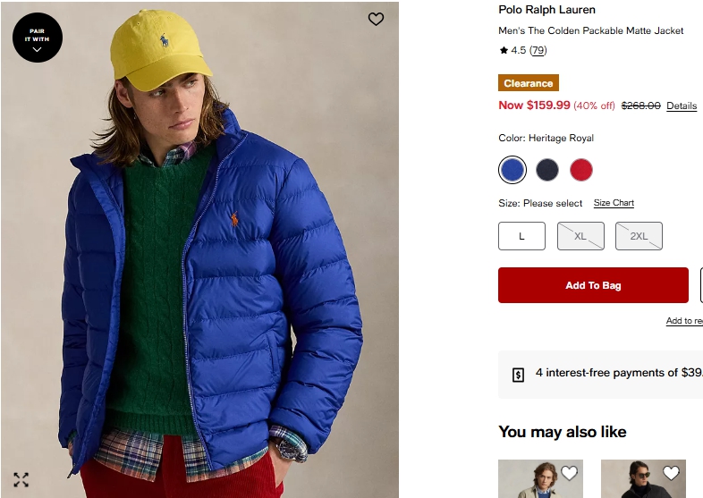 폴로랄프로렌 맨 콜든 패커블 매트 자켓 $159.99
