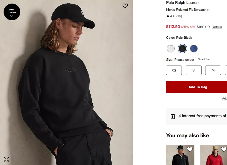 폴로랄프로렌 맨 릴랙스 핏 스웻셔츠 $112.50