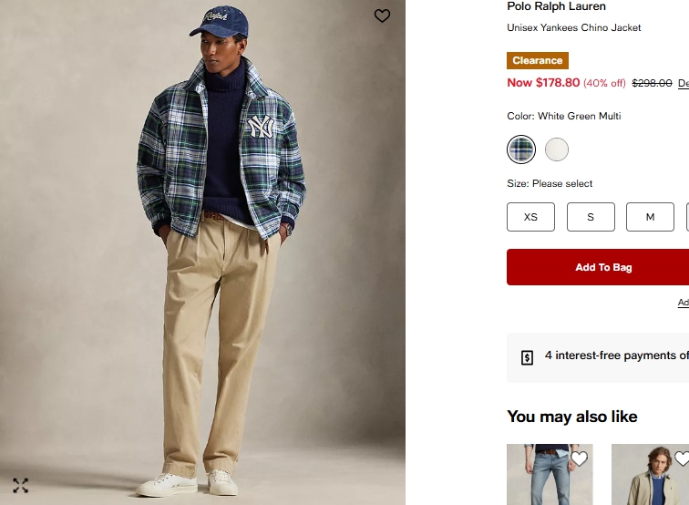 폴로랄프로렌 유니섹스 양키스 치노 자켓 $178.80
