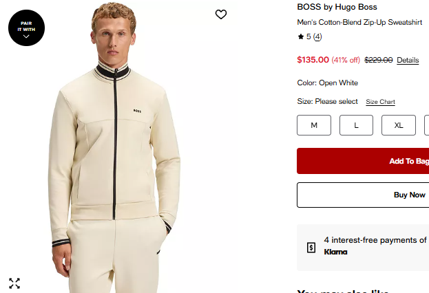 휴고보스 맨 면혼방 집업 스웻셔츠 $135.00