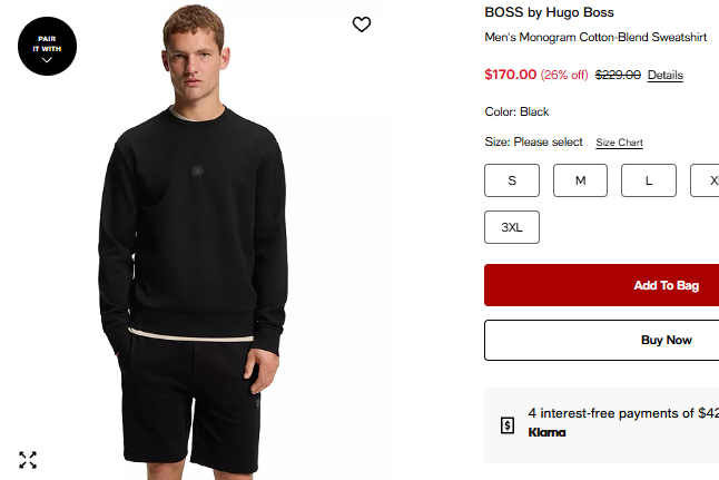 휴고보스 맨 모노그램 면혼방 스웻셔츠 $170.00