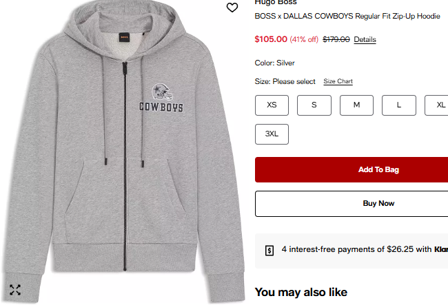 휴고보스X달라스 카우보이 레귤러핏 집업 후디 $105.00
