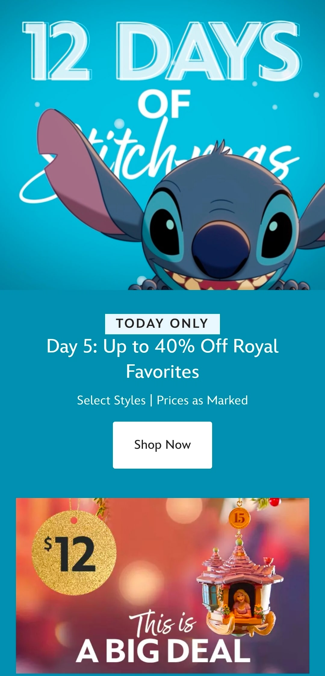 최대 40% 할인 중이고, 오너먼트 상품은 매일 정해진 품목 12달러 행사 중이네요!